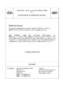 Diese Empfehlung regelt den maschinellen Datenaustausch von Spediteurbescheinigungen von den Spediteuren an die Warenversender (Zulieferindustrie und Hersteller in der Automobilindustrie). Sie ist das Ergebnis der gemeinsamen Projektarbeit des VDA-Arbeitskreises Kommunikations- und Informationstechnologie in Zusammenarbeit mit dem Deutschen Speditions- und Logistikverband e.V. (DSLV).